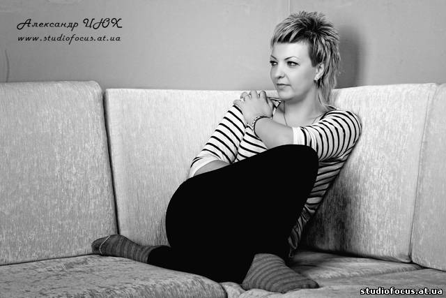 фотосъемка в студии в Евпатории, женщина сидит на диване, фотограф Александр Цюх, фотосессии в Крыму, ч\б фотография